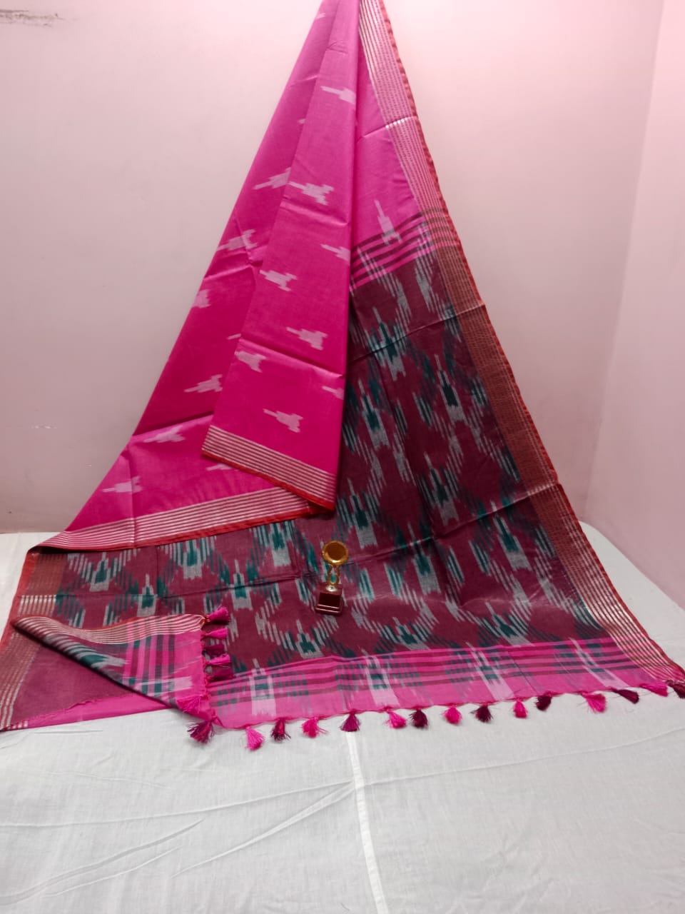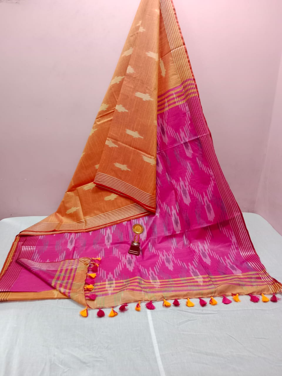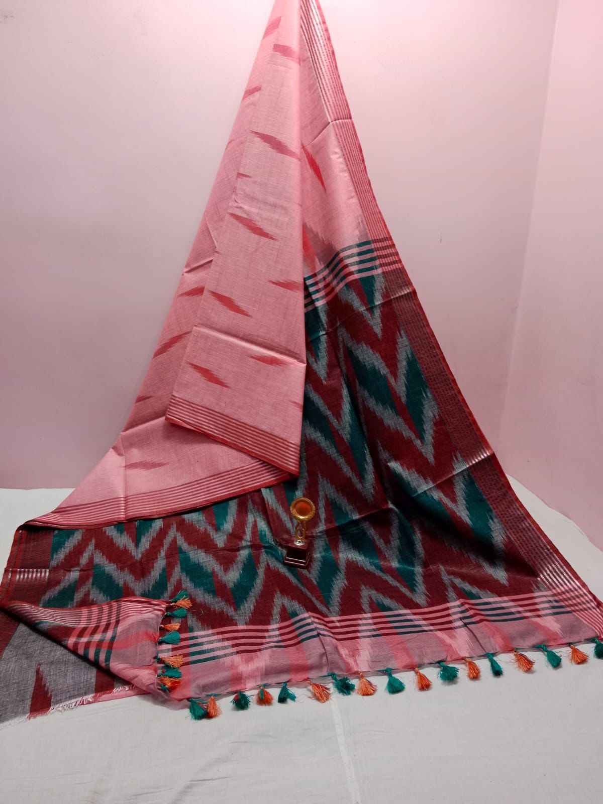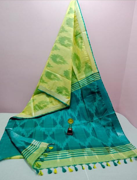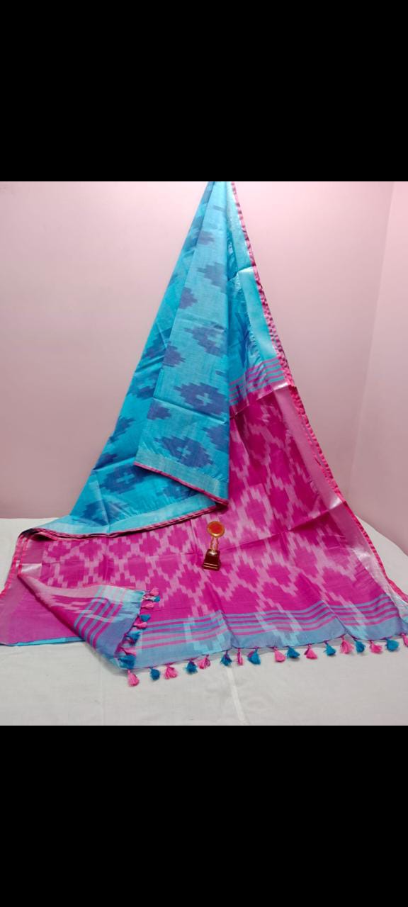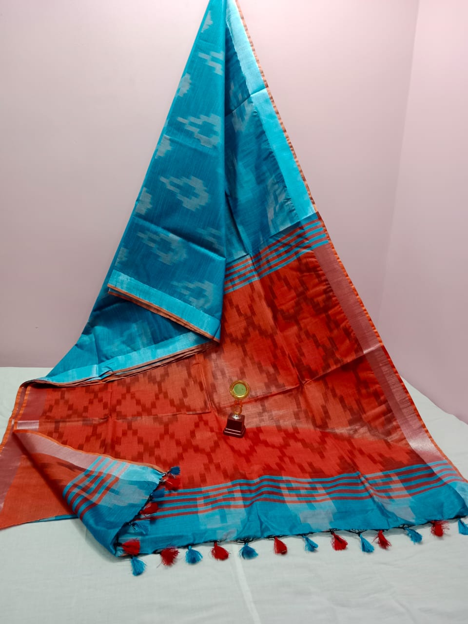 Celebrate timeless tradition with this elegant Cotton Ikkat Saree, crafted using authentic Ikkat dyeing techniques that create beautiful patterns across the saree. Made from soft and breathable cotton, this saree ensures comfort along with ethnic charm.