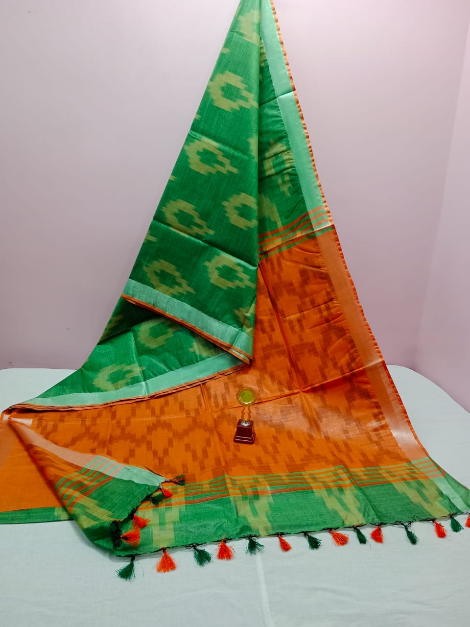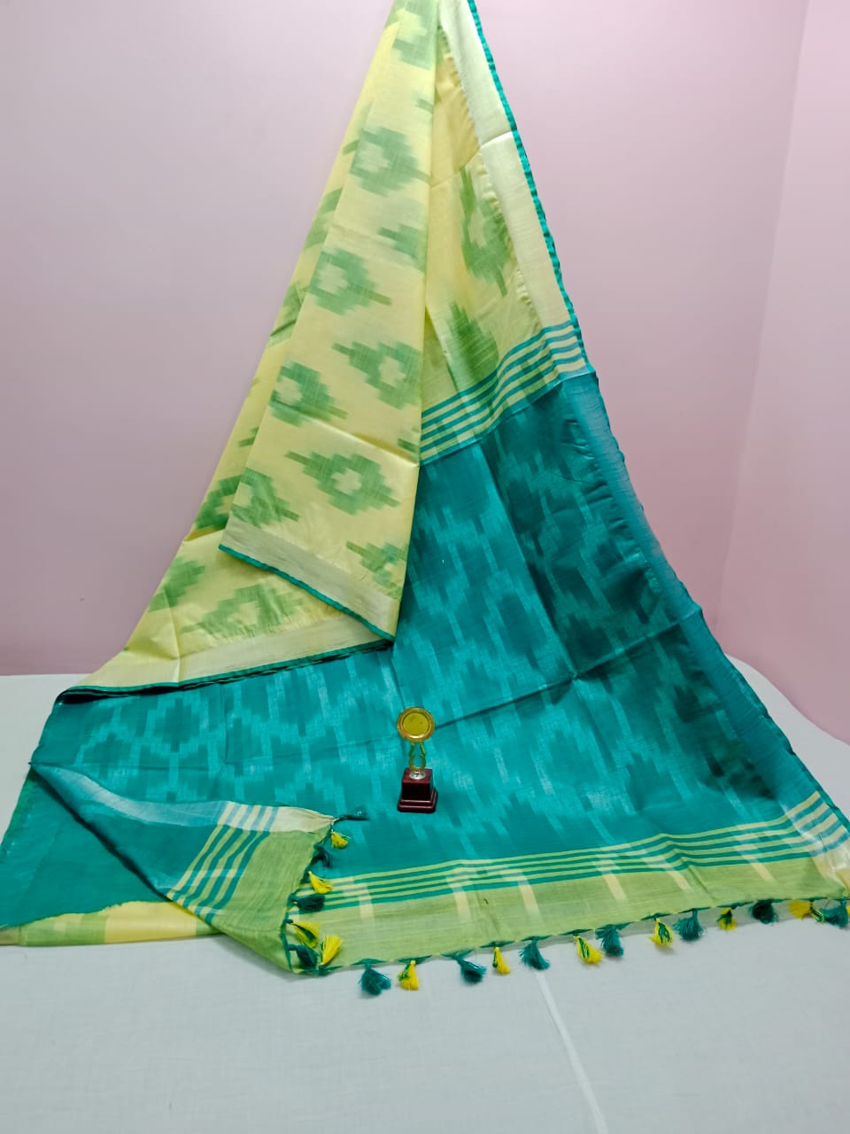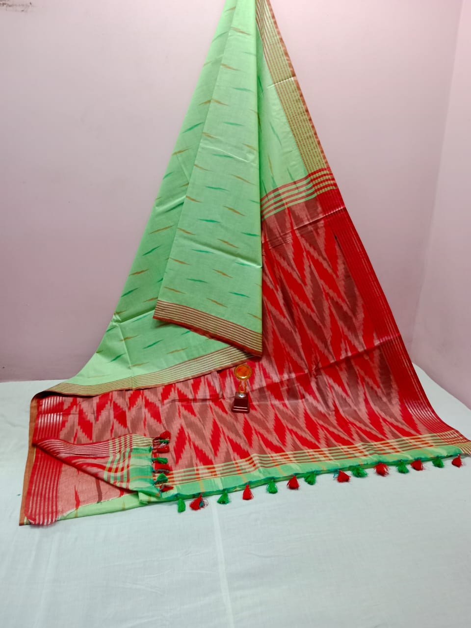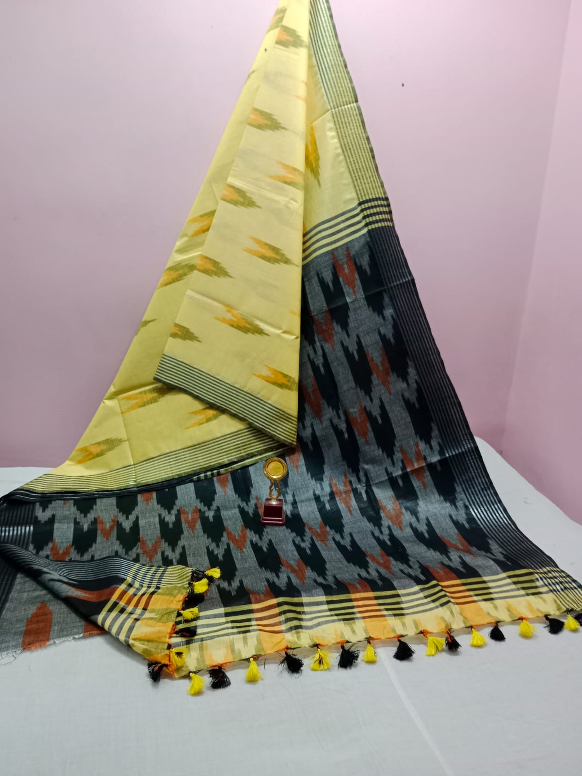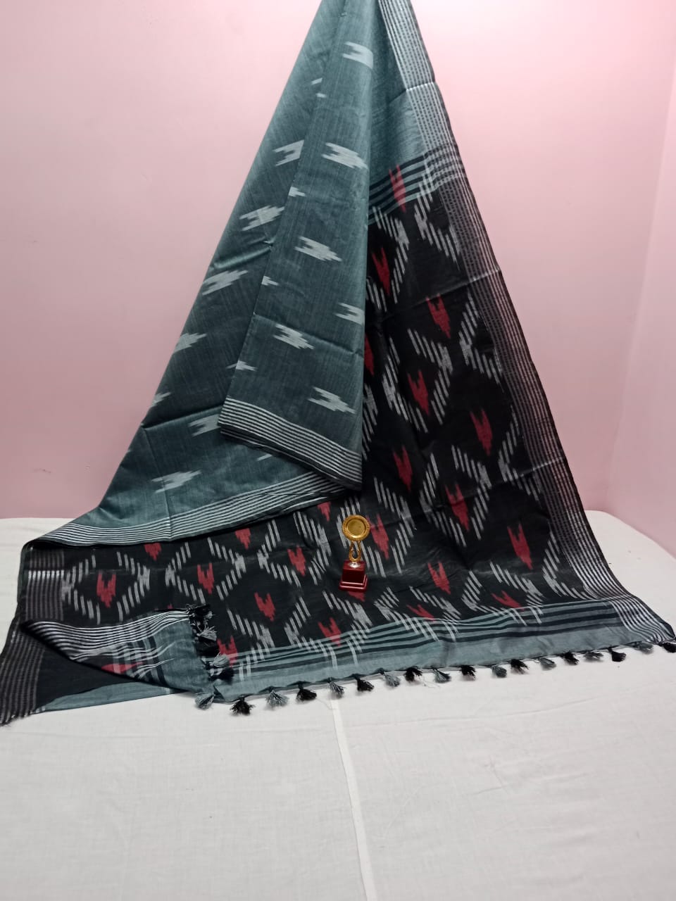 Celebrate timeless tradition with this elegant Cotton Ikkat Saree, crafted using authentic Ikkat dyeing techniques that create beautiful patterns across the saree. Made from soft and breathable cotton, this saree ensures comfort along with ethnic charm.