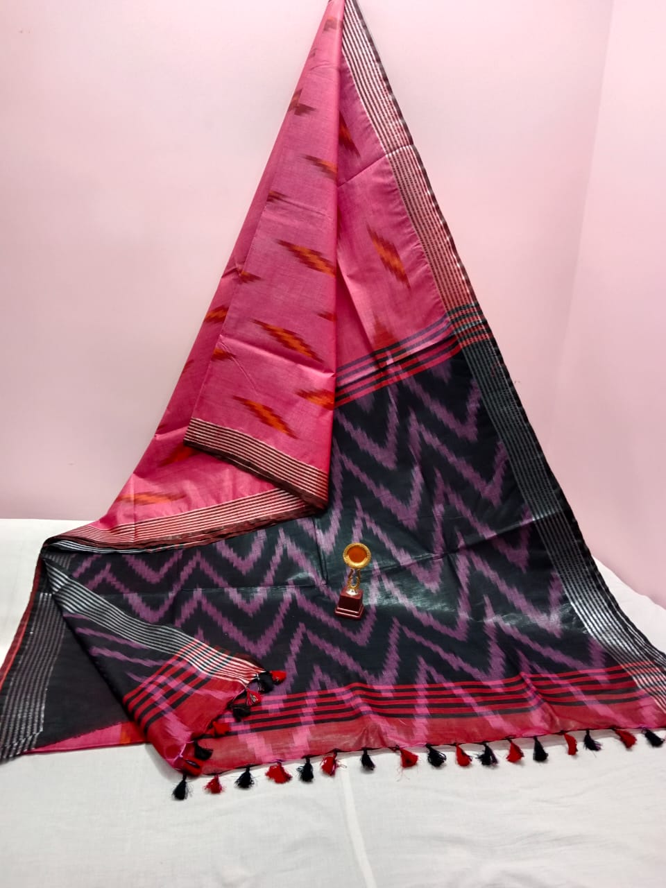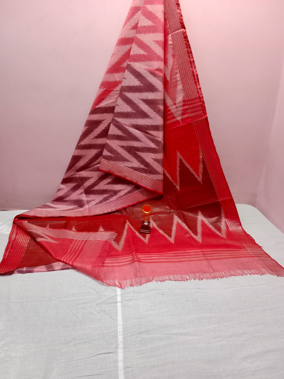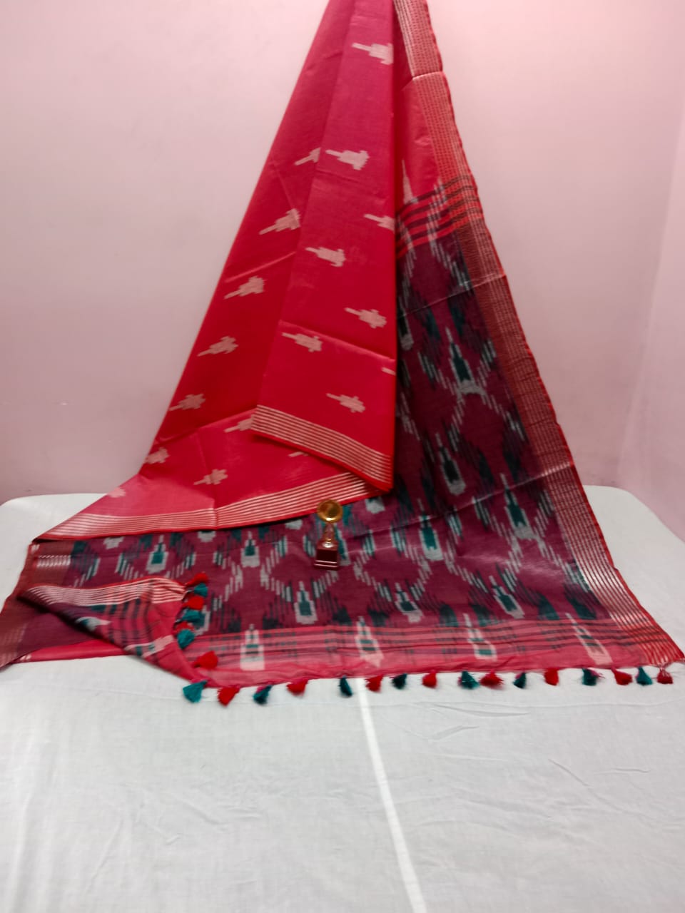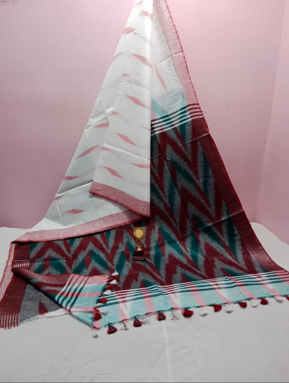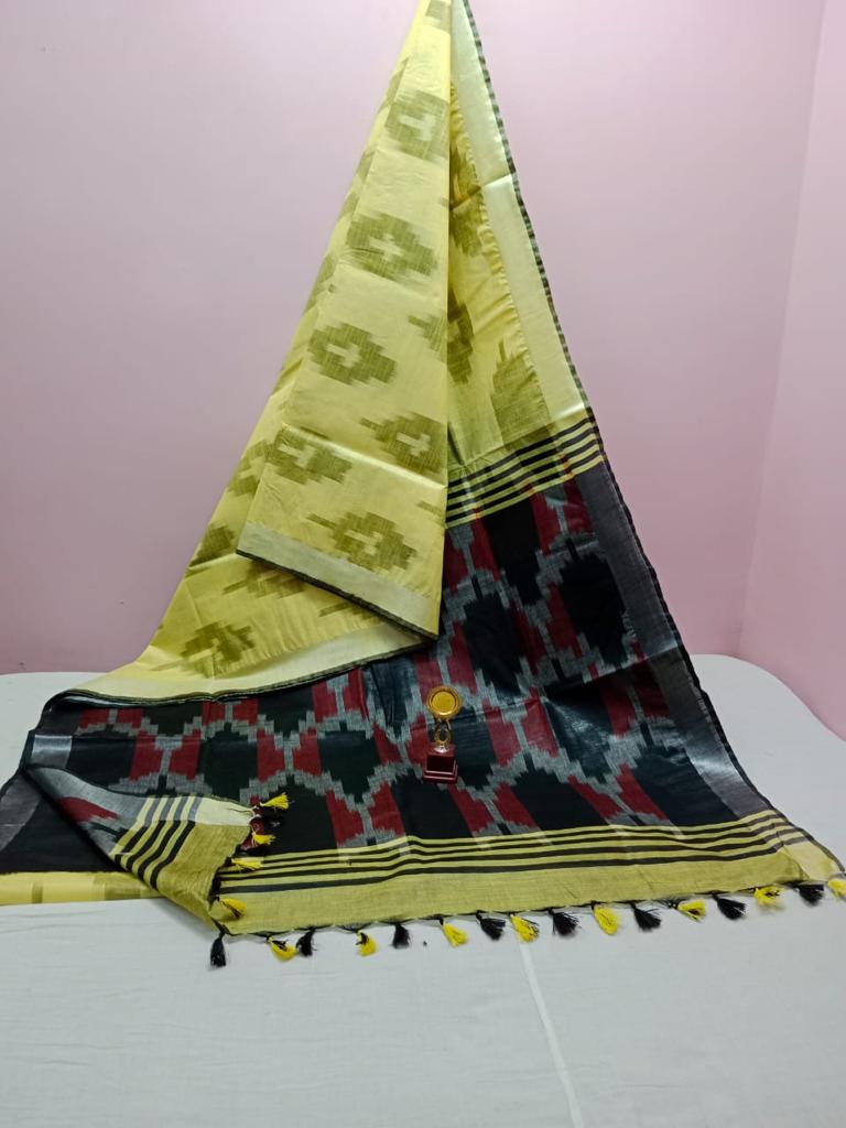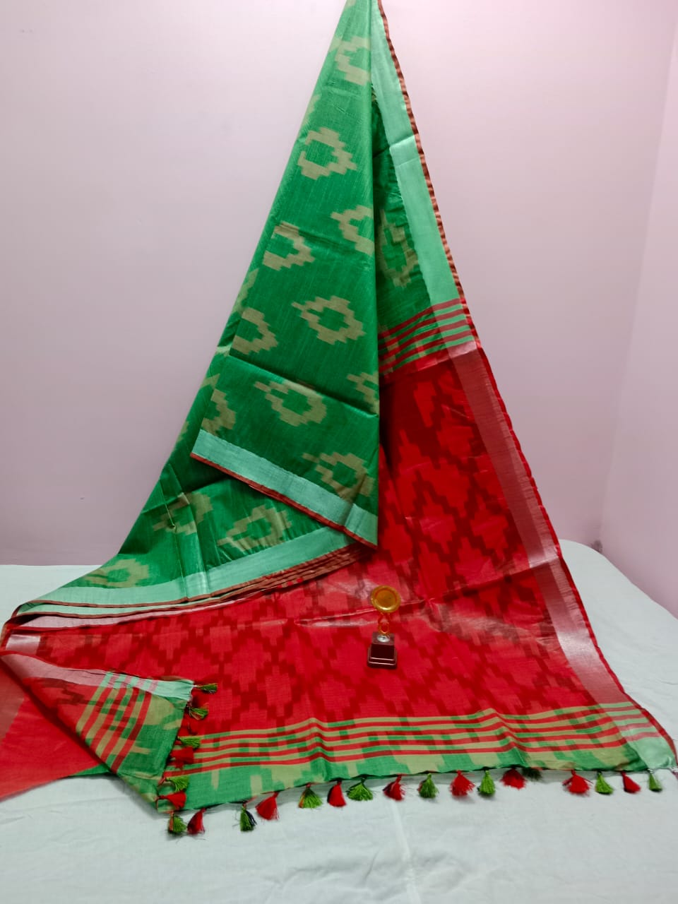 Celebrate timeless tradition with this elegant Cotton Ikkat Saree, crafted using authentic Ikkat dyeing techniques that create beautiful patterns across the saree. Made from soft and breathable cotton, this saree ensures comfort along with ethnic charm.