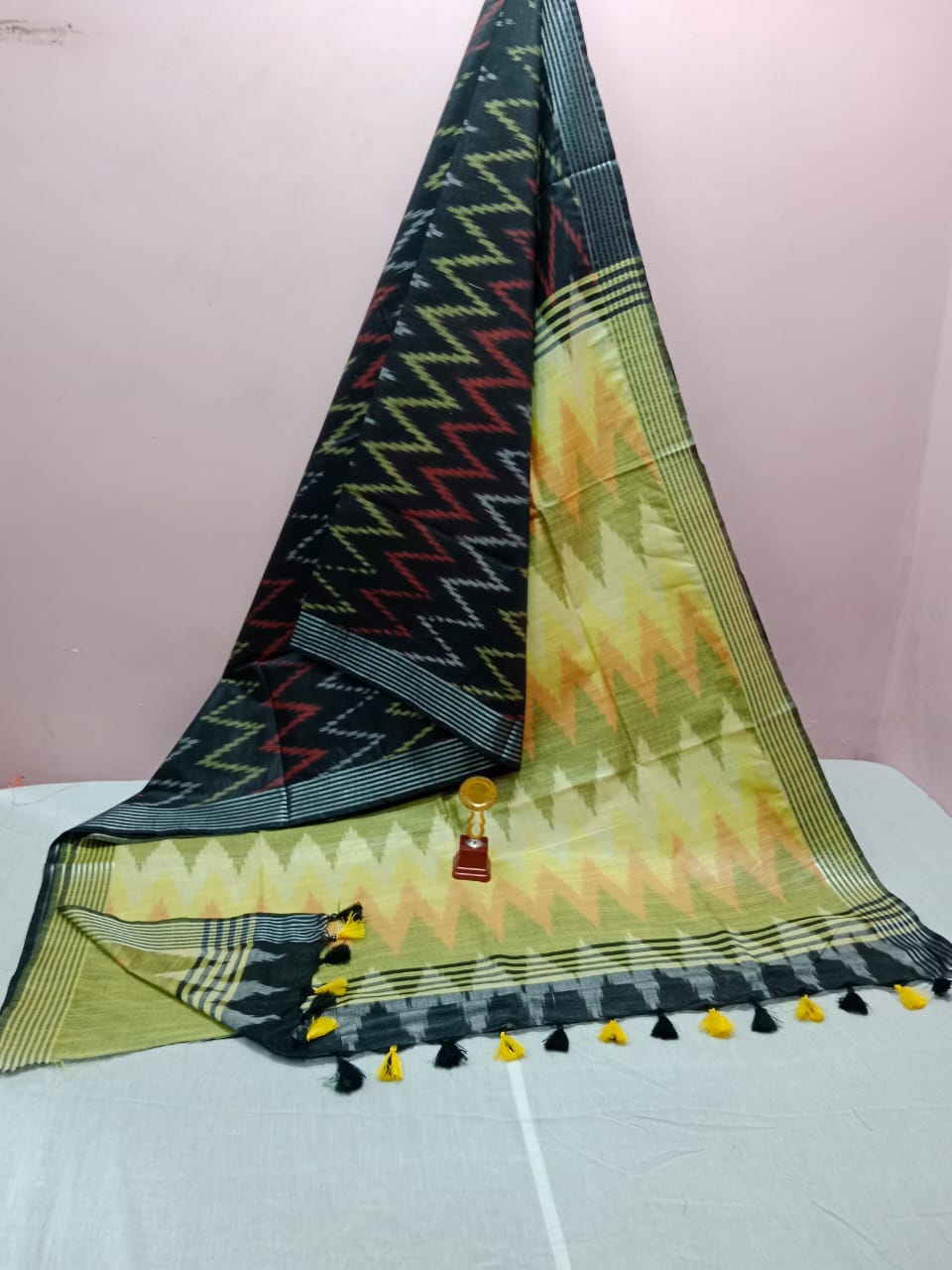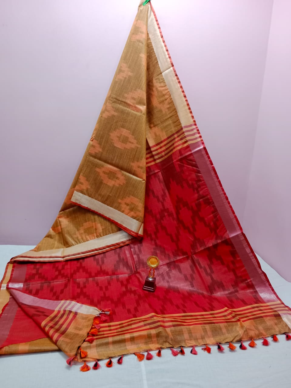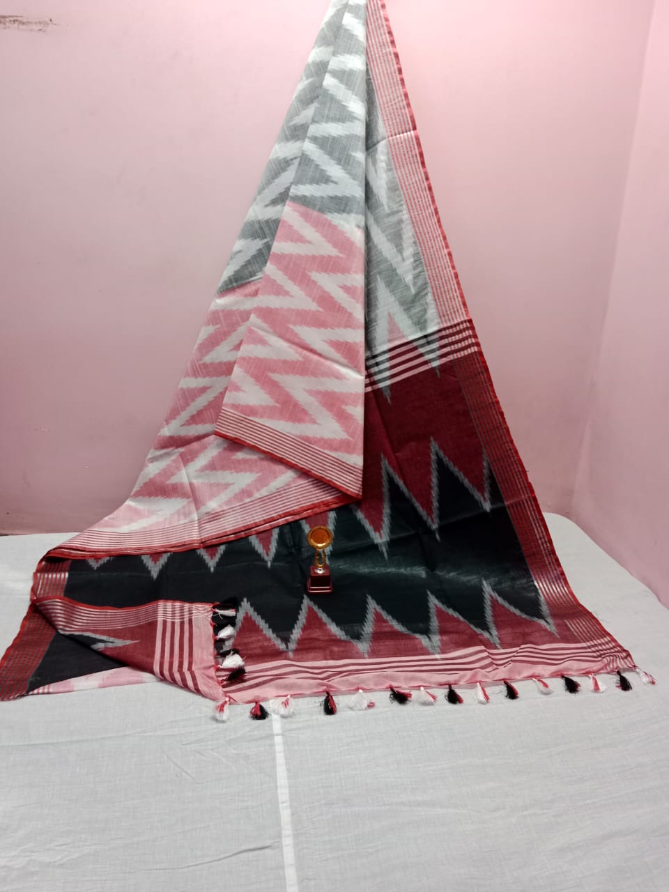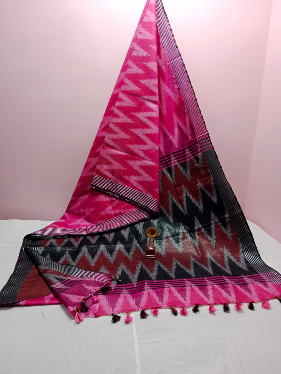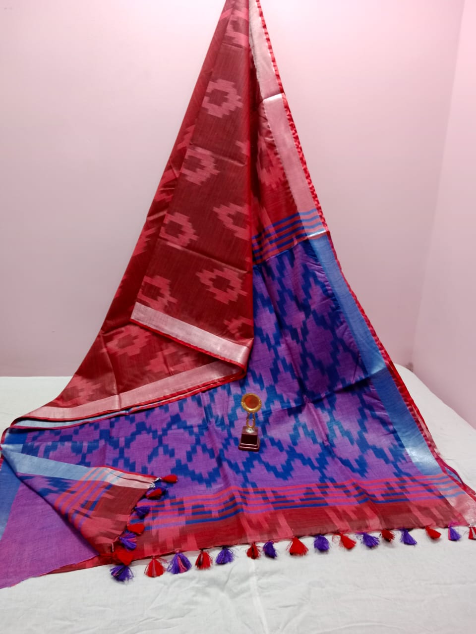 Celebrate timeless tradition with this elegant Cotton Ikkat Saree, crafted using authentic Ikkat dyeing techniques that create beautiful patterns across the saree. Made from soft and breathable cotton, this saree ensures comfort along with ethnic charm.