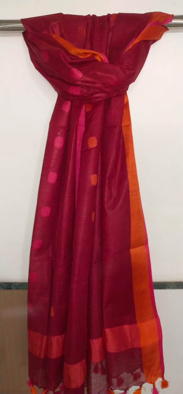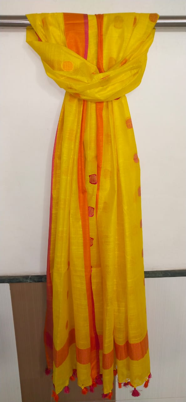 This elegant linen dupatta features a unique cutwork rasgulla design, adding a refined handcrafted touch to your ethnic look. Made from breathable linen fabric, it offers a lightweight feel with a graceful drape, perfect for festive occasions and elegant everyday wear.