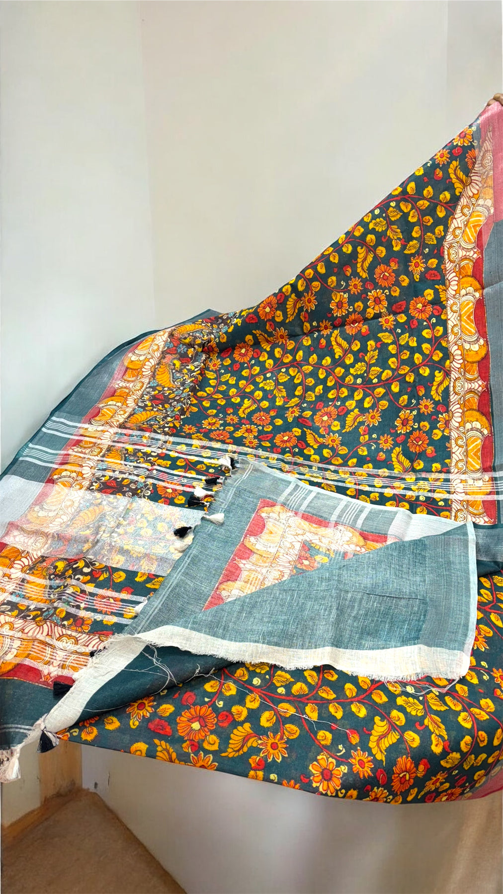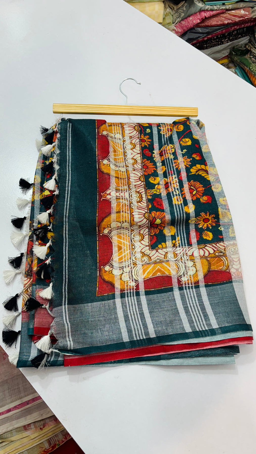 Upgrade your ethnic wardrobe with this elegant Digital Print Pure Linen Saree, crafted from premium-quality linen fabric. Designed for comfort and style, this saree offers a soft texture, breathable feel, and a graceful drape perfect for all-day wear.