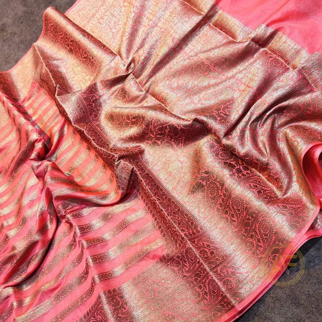 Design: Elegant stripes weaving all over the saree