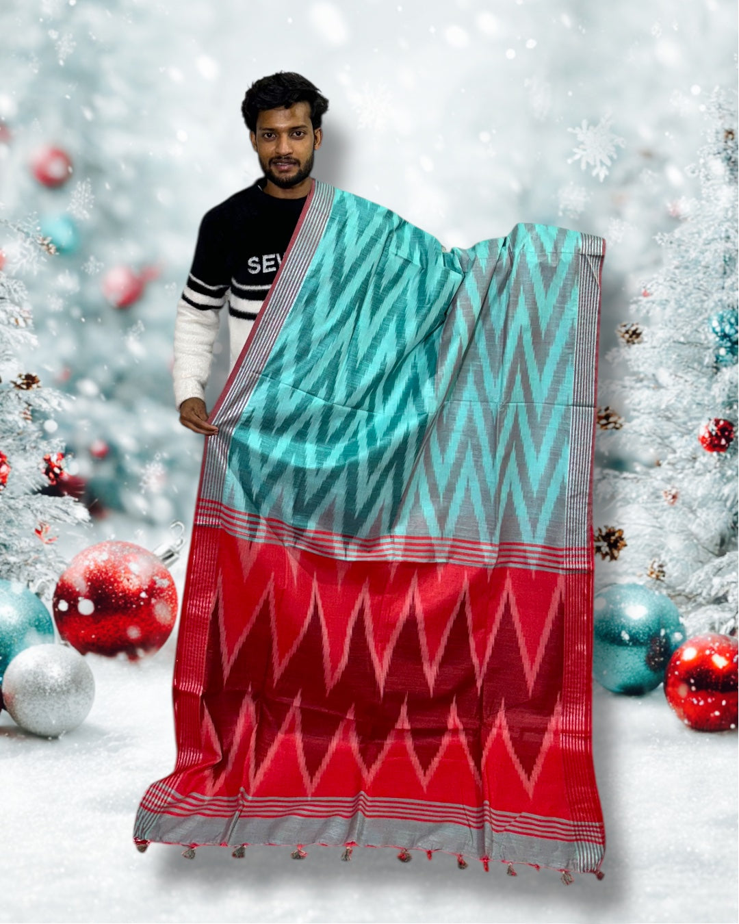 Experience the timeless elegance of authentic Pochampally Ikat craftsmanship with this beautifully handwoven saree. Crafted using traditional resist-dye techniques, it features intricate geometric patterns and rich color combinations that reflect India’s heritage.